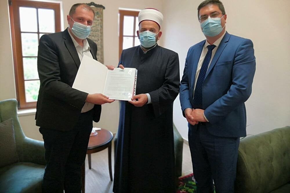 Reisu Islamske zajednice Rifatu Fejziću direktori CEDIS-a i EPCG Vladimir Čađenović i Nikola Rovčanin uručili su akt o povraćaju objekta Hadži Hasanove džamije u Pljevljima. Reis se zahvalio gostima na najljepšoj bajramskoj čestiki, kao i Odboru direktora CEDIS-a na čelu sa predsjednikom Rajkom Radoševićem, koji je jednoglasno podržao ovaj čin.